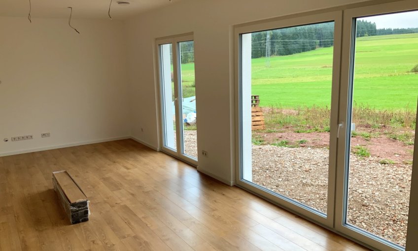 Die Bodenbeläge im Wohnzimmer und Küche wurden verlegt.