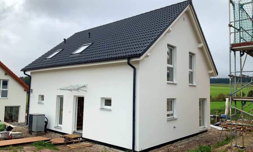 Das Dach wird gedeckt, die Fenster und Türen wurden eingebaut. Nun ist der Rohbau geschlossen.