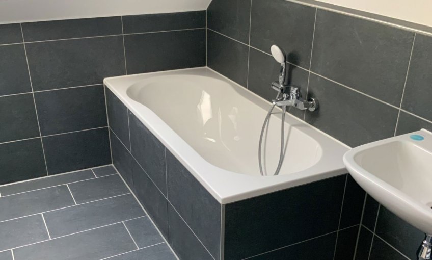 Die Sanitärobjekte im Badezimmer wurden montiert.