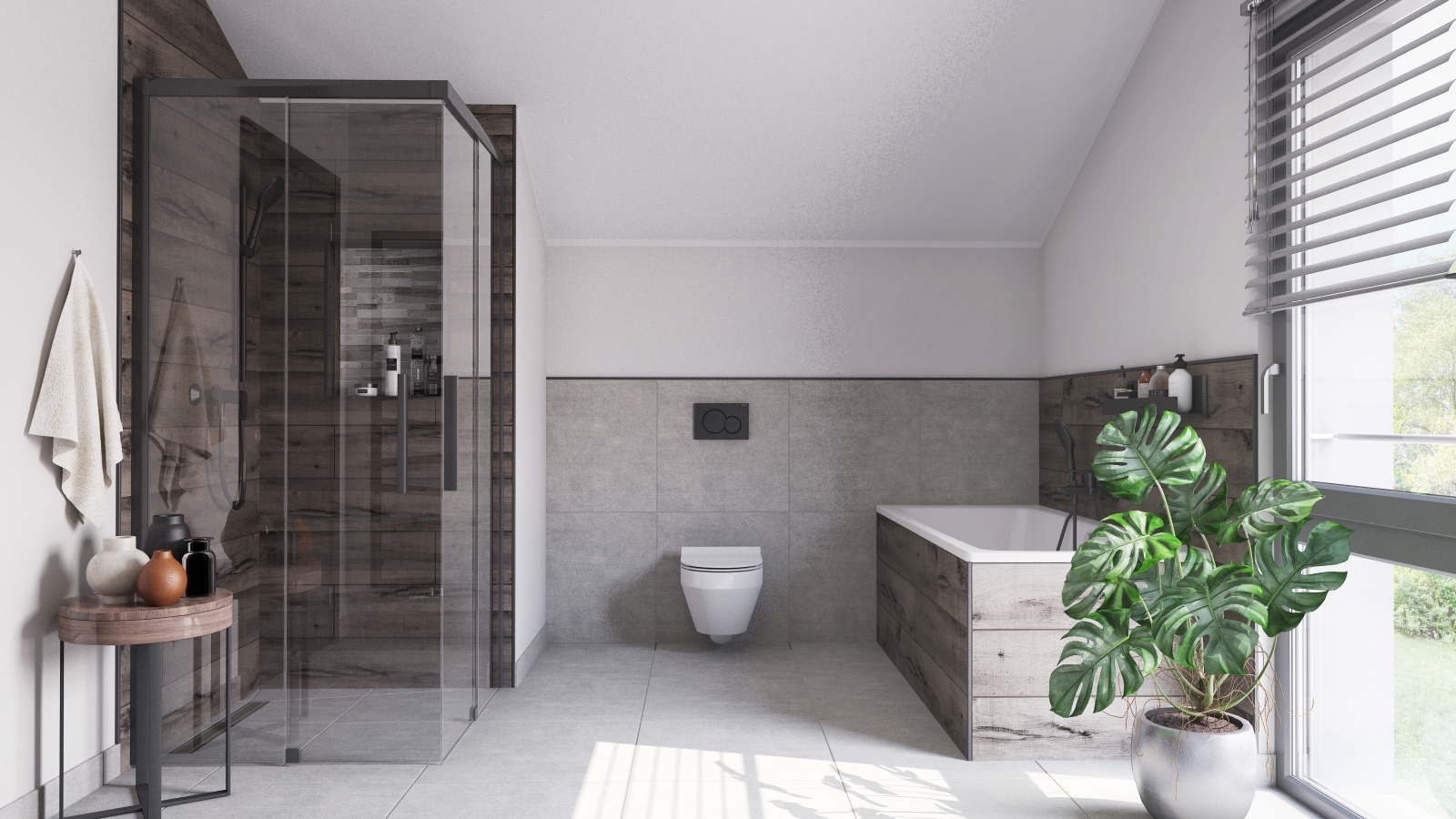 inklusive Maler, Fliesen, Sanitär, Vinyl, Laminat, elektrischen Rollläden und Technikpaket (Luft-Wasser-Wärmepumpe + Fußbodenheizung + zentrale Lüftungsanlage mit Wärmerückgewinnung) ab Oberkante Bodenplatte